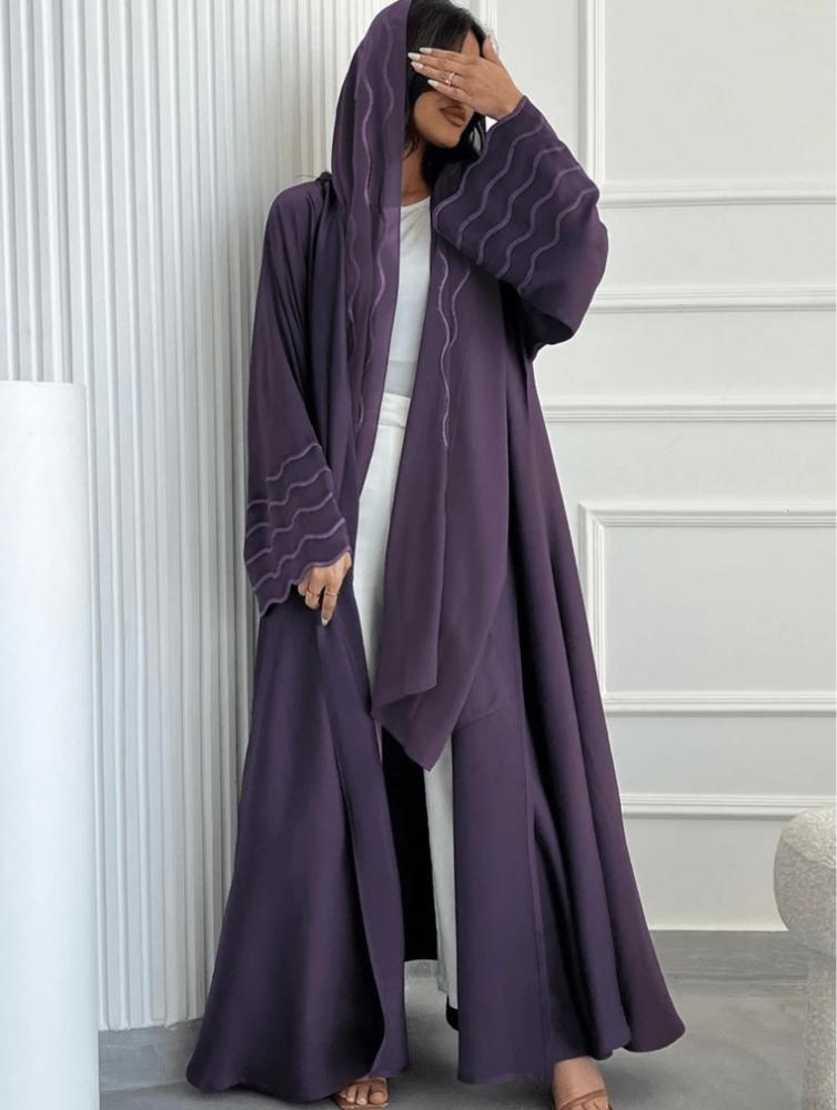 - تمنحك عباية قطعتين رمادية مع تطريز مخطط إطلالة أنيقة تجمع بين الطابع الكلاسيكي والتفاصيل العصرية التي تناسب مختلف الأوقات