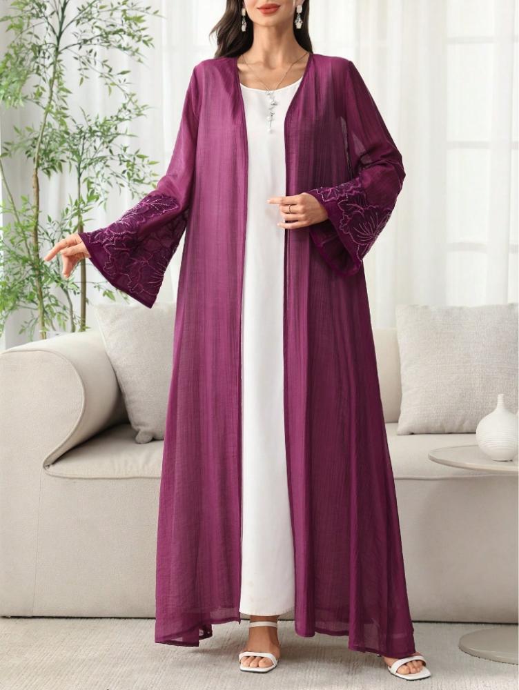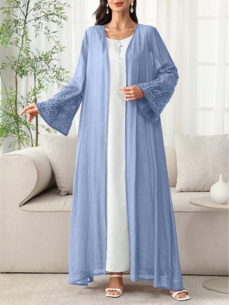 - عباية مطرزة ورد تمنحك إطلالة ناعمة ومميزة بفضل تفاصيل التطريز الراقية التي تبرز جمال التصميم
